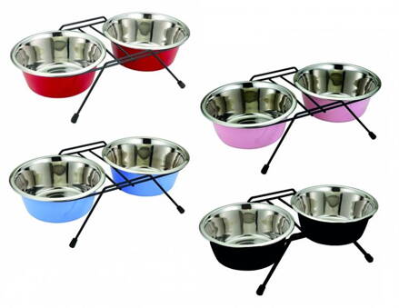 Stojan s dvomi nerezovými miskami v rôznych farbách
